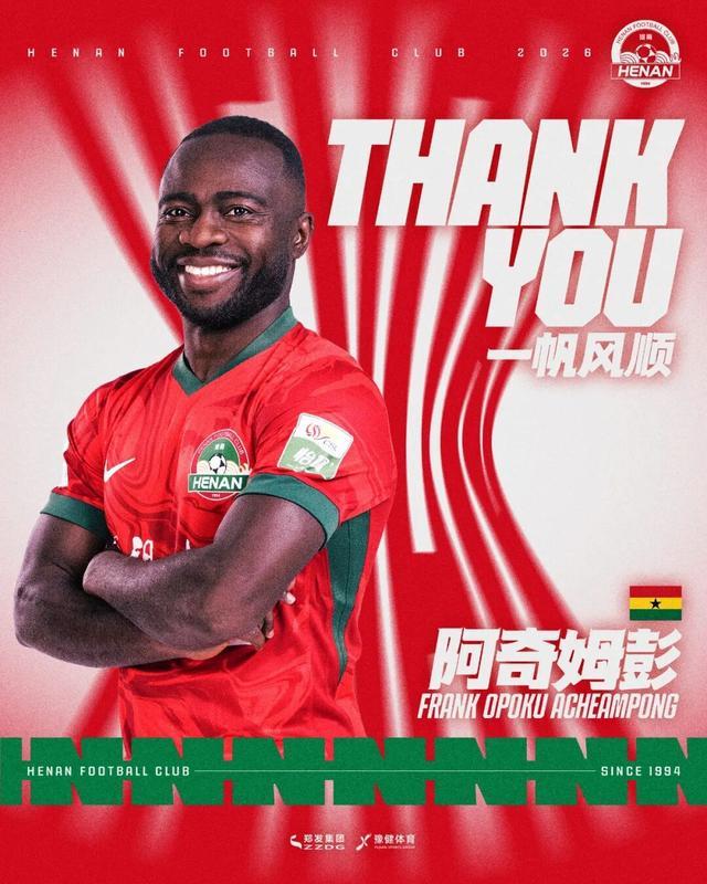 HTH Realbet-河南足球俱乐部发布公告:阿奇姆彭等10人合同到期正式离队
