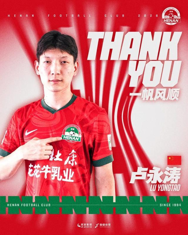 卢永涛,2025赛季中期租借加盟河南,共代表一线队出场12次,打进2球。